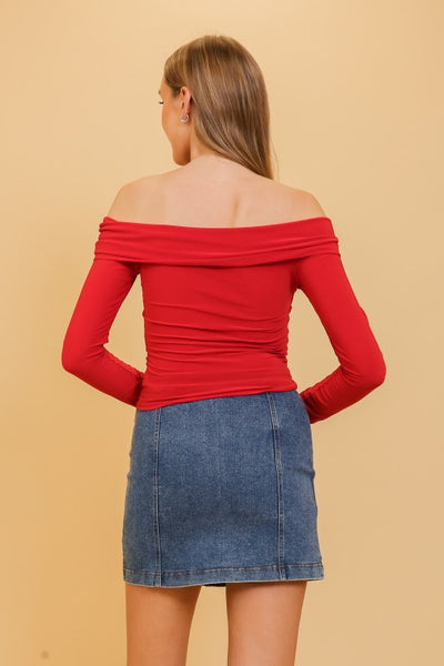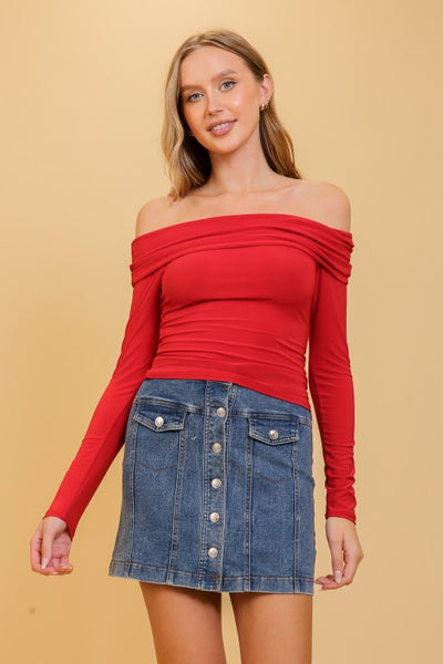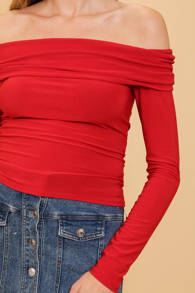 Add a touch of sleek sophistication to your wardrobe with this off-shoulder ITY knit long sleeve top. Featuring a flattering off-shoulder neckline, this piece effortlessly combines elegance and comfort. The soft ITY (Interlock Twist Yarn) knit fabric hugs your figure beautifully, while the long sleeves provide a chic contrast to the exposed neckline. Perfect for a night out or a stylish daytime look, this top pairs seamlessly with high-waisted skirts, jeans, or wide-leg trousers. Its versatile design allows for both casual and dressy ensembles, making it a must-have in any wardrobe.