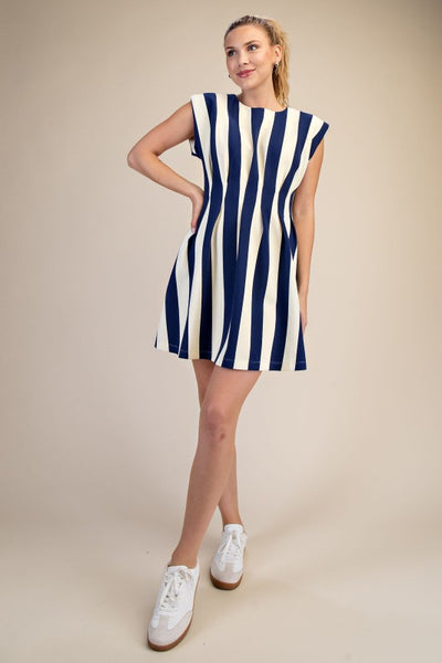 Round Neck Waist Pleated Mini Dress Model Height: 5'8" Wearing Size Small